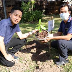 พร้อมด้วยคณะผู้บริหารและเจ้าหน้าที่ ร่วมกันปลูกต้นไม้บริเวณสวนป่ากองกษาปณ์