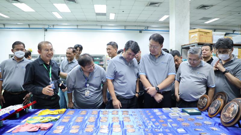 | วันศุกร์ที่ 14 พฤศจิกายน 2568 นายชลทิตย์ ไชยจันทร์ ผู้อำนวยการกองกษาปณ์ ให้การต้อนรับคณะผู้บริหารและพนักงานโรงพิมพ์ธนบัตร ธนาคารแห่งประเทศไทย เข้าเยี่ยมชมกระบวนการผลิตเหรียญกษาปณ์ เหรียญที่ระลึก เครื่องราชอิสริยาภรณ์และของสั่งจ้าง พร้อมชมศูนย์การเรียนรู้วิวัฒนาการการผลิตเหรียญกษาปณ์และเครื่องราชอิสริยาภรณ์ |