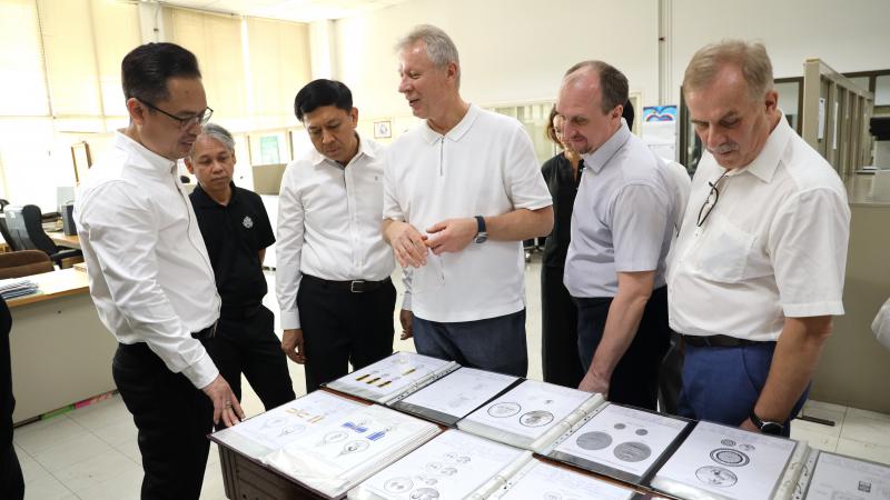 | วันพฤหัสบดีที่ 19 กุมภาพันธ์ 2569 นายชลทิตย์ ไชยจันทร์ ผู้อำนวยการกองกษาปณ์ พร้อมผู้บริหาร ให้การต้อนรับคณะผู้บริหารบริษัทฯ GOZNAK และโรงกษาปณ์มอสโก สหพันธรัฐรัสเซีย เข้าเยี่ยมชมกระบวนการผลิตเหรียญกษาปณ์ เหรียญกษาปณ์ที่ระลึกเครื่องราชอิสริยาภรณ์และของสั่งจ้าง พร้อมชมศูนย์การเรียนรู้วิวัฒนาการการผลิตเหรียญกษาปณ์และเครื่องราชอิสริยาภรณ์ |