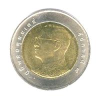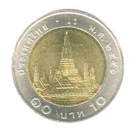 กลางเหรียญวงในซึ่งเป็นโลหะสี ทองมีพระบรมรูปพระบาทสมเด็จพระปรมินทรมหาภูมิพลอดุลยเดช ทรงผินพระพักตร์ทางเบื้องขวา ทรงแลองพระองค์เครื่องแบบเต็มยศจอมทัพ ฉลองพระองค์ครุยมหาจักรีบรมราชวงศ์ ทรงเครื่องขัตติยราชอิสริยาภรณ์อันมีเกียรติคุณรุ่งเรืองยิ่งมหาจักรีบรม ราชวงศ์และสายสร้อยจุลจอมเกล้า ภายในวงนอกของเหรียญซึ่งเป็นโลหะสีขาว ด้านขวามีข้อความว่า "ภูมิพลอดุลยเดช" ด้านซ้ายมีข้อความว่า "รัชกาลที่ ๙" กลางเหรียญวงในซึ่งเป็นโลหะสีทองมีรูปพระปรางค์วัดอรุณราชวราราม กรุงเทพมหานคร ภายในวงนอกของเหรียญซึ่งเป็นโลหะสีขาว เบื้องบนมีอักษรเบรลล์ซึ่งมีความหมายบอกราคาว่า "๑๐" เบื้องล่างมีข้อความบอกราคาว่า "๑๐ บาท 10" ด้านขวามีข้อความว่า "ประเทศไทย" ด้านซ้ายมี พ.ศ. และเลขของปี พ.ศ. ที่จัดทำเหรียญ