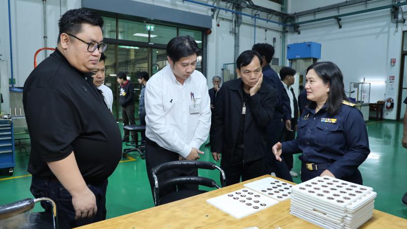 วันจันทร์ที่ 12 มกราคม 2569 นายชลทิตย์ ไชยจันทร์ ผู้อำนวยการกองกษาปณ์ ให้การต้อนรับ คณะอาจารย์ นักศึกษาระดับปริญญาโทและระดับปริญญาเอก ภาควิชาวิศวกรรมอุตสาหการ คณะวิศวกรรมศาสตร์ มหาวิทยาลัยเทคโนโลยีราชมงคลธัญบุรี เข้าเยี่ยมชมกระบวนการผลิตเหรียญกษาปณ์หมุนเวียน เหรียญกษาปณ์ที่ระลึก เหรียญที่ระลึกเครื่องราชอิสริยาภรณ์และของสั่งจ้างพร้อมชมศูนย์การเรียนรู้วิวัฒนาการ การผลิตเหรียญกษาปณ์และเครื่องราชอิสริยาภรณ์